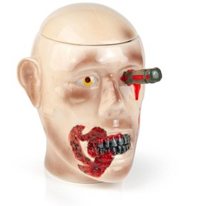 Need a place to keep your rations during a zombie apocalypse? This officially licensed Walking Dead Ceramic Cookie Jar is based on the head of the infamous RV Walker killed by Andrea in Season 2 of the hit AMC show. Cookie jar measures approximately 9-inches tall x 9-inches long x 7-inches wide.