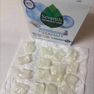 Seventh generation lemon dishwasher packets dissolve nicely in the dishwasher without any residue on my dishes. Removes stains and tough particles left on your dishes. Consistency is perfect!