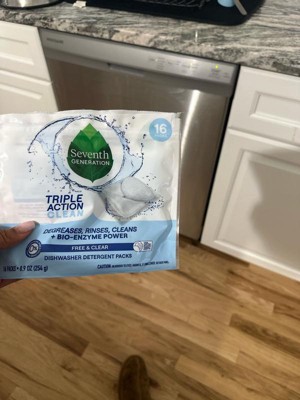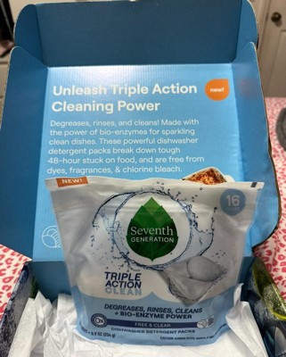 [This review was collected as part of a promotion.] Seventh Generation Triple Action Clean Dishwasher Packs clean dishes effectively without harsh chemicals. They cut through grease, leave no residue, and work well even on tough loads. The 16ct pack is convenient and eco-friendly. A reliable green choice.