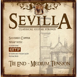 Sevilla Strings are classical guitar strings that feature Cleartone Strings' Patented EMP Coating. At one micron thickness, the Sevilla Strings treatment is the thinnest coating in the industry, designed to last a long time without compromising the feel and sound of traditional guitar strings. This is a Medium tension Classical Tie-On guitar string set.