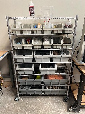 Absolutely love this product. We are a small medical clinic and this is perfect for organizing our supplies. Comes with the shelving unit, bins, bin dividers, and labels for the bins. Good quality and easy to assemble.