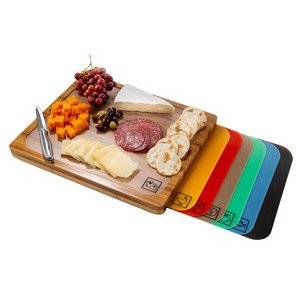 - HYGIENIC ODOR RESISTANT - Contains 7 color coded plastic (BPA free) cutting mats to avoid cross contamination. Designed to fit snugly into the top surface of the cutting board; use them with the cutting board or separately and store them inside the cutting board when not in use.