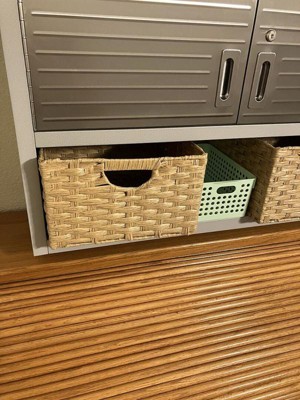 Seville Classics Handwoven Basket Set (2-Pack) is a stylish and practical way to store household essentials. The lightweight set includes two rectangle baskets made from handwoven synthetic strands wrapped around a study steel frame. Uniquely handwoven by local artisans, so there may be slight variations in size and imperfections. The 2-pack basket set keeps items out of sight, making it ideal for household essentials, while adding style and storage versatility to any room and blending seamlessly with different decor styles. The baskets feature two cut-out handles for easy carrying. No assembly required, simply unfold, and set. Design Patent Pending.