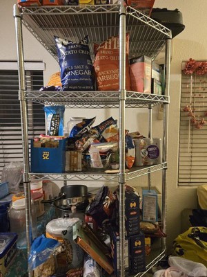 We have a 4 ft x 4 ft pantry and this corner shelving worked perfectly. We also have a cart. Seville Classics have the best NSF Steel Shelving that assembles easily. They are sturdy and extremely Heavy Duty.