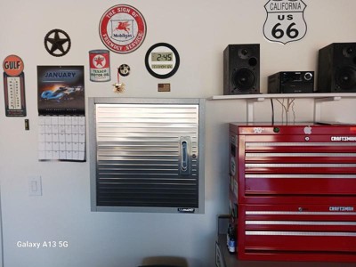 Adding more to our garage. These two wall units the most recent. Though not meant to be placed like this, they are perfect for the garage corner. Added Gorilla shelf liners