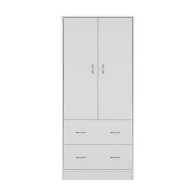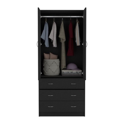 SEVOBAL Armoires 2 Drawer Armoire with Double Doors Hanging Rod and Spacious Storage for Bedroom Storage, Black, 31.5"*20.5"*70.9"