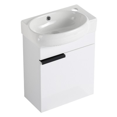 Durable ceramic basin: This vanity features a drop-in ceramic basin with a smooth, waterproof surface for easy cleaning, and is pre-drilled to fit a 4-inch center-mount faucet.
