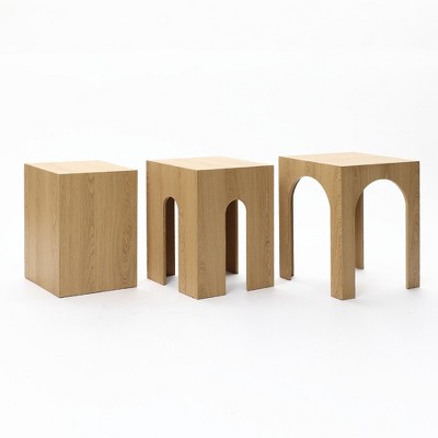 Set Configuration: You receive three rounded tables in a coordinated set each with a distinct size for tiered styling options The cylindrical shape and smooth finish create a harmonious look.