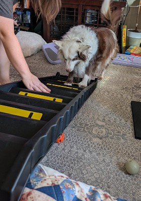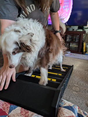 It makes for a pretty good slant for the couch. It folds nice. It's not heavy. However, it's slippery for the dog going up/down. We had to buy grip tape for it. Do we want to add a photo?