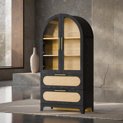 Revitalize your living space with this exquisite cabinet, seamlessly merging style and functionality.Its sleek handles add a touch of elegance, allowing it to effortlessly blend into a variety of interior designs. Thoughtfully crafted to fulfill all your storage requirements, this sideboard boasts a well-organized layout. It includes both drawers for concealed storage and open shelves, offering ample space to neatly store and display the items you want to keep visible.