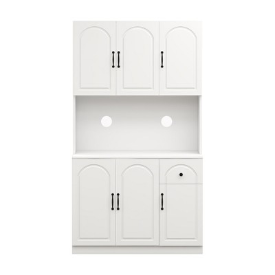 Product Name: Sevobal Utility Storage Cabinets, Floor Cabinet with Doors and Open Shelves for Living Room Kitchen Hallway, White, 12.6"*12"*31.5"