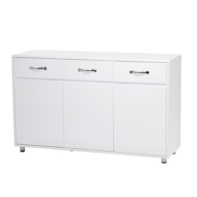 Upgrade your living space with this versatile cabinet, a harmonious fusion of aesthetics and practicality. Its sleek handles add a touch of elegance, allowing it to effortlessly blend into a variety of interior designs. Thoughtfully crafted to fulfill all your storage requirements, this sideboard boasts a well-organized layout. It includes both shelves and drawers, offering ample space to neatly store and conceal the items you want to keep out of sight.