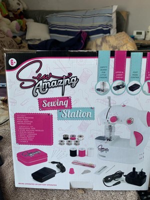 The Sew Amazing Sewing Station is the ideal way for kids to get started in the fun and creative craft of sewing. It is a fully functional starter sewing machine so kids who want to have a go at sewing can do in a fun and safe way. Sewing is a relaxing and fun hobby which provides a way for children to get crafty, unleash their creativity and develop their hand to eye coordination. The machine is mains or battery operated. The Sewing Station includes a starter sewing machine foot pedal mains adapter, full instructions, accessories tin, a measuring tape, 1 spare machine needle, a needle threader, 3 bobbins, 3 spools, a thimble, 2 sewing needles and 8 headed pins It comes in a full colour box making it a lovely gift for any child Suitable for age 6+