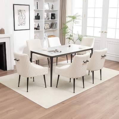 SEYNAR Modern Glam Boucle Pleated Velvet Dining Chair or Vanity Chair Set of 6 with Rear Handle