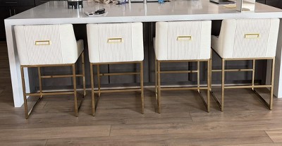 SEYNAR Modern Glam Velvet Golden Matel Frame Counter or High Bar Stools Set of 4,Beige,20.5''W*22''D*35.8''H