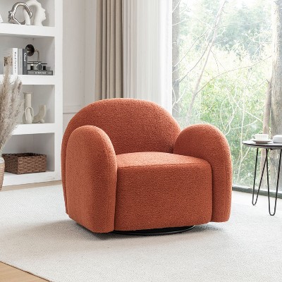 Sink into cozy comfort with this teddy-upholstered accent chair, designed to bring warmth and modern charm to any space. The thick, padded seat cushion offers exceptional support, making it perfect for long hours of lounging, reading, or working. A fan-shaped backrest and integrated armrests create an enveloping silhouette that not only provides ergonomic support but also adds a unique sculptural touch to your room. The chair sits atop a sleek metal base with a smooth 360-degree swivel function, allowing you to turn with ease and flexibility—ideal for both casual seating areas and stylish home offices. Whether placed in a bedroom corner, living room, or dressing area, this chair combines plush texture with modern utility for an inviting everyday retreat.