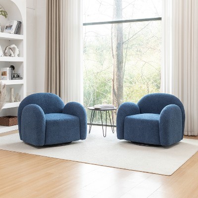 SEYNAR Modern Teddy Upholstered 360 Degree Swivel Armchair with Metal Base