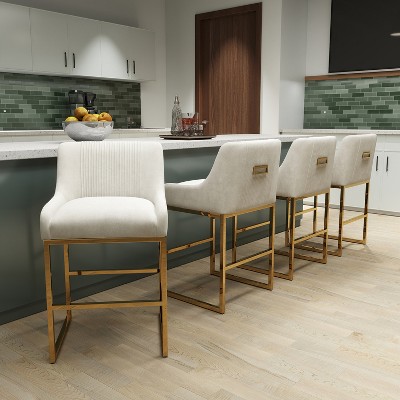 SEYNAR Modern Velvet 39'' H Metal Leg Counter or Bar Stools Set of 4