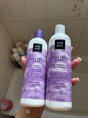 Professionally developed SGX NYC Luscious Love volumizing & thickening Shampoo, helps thin, limp hair look fuller and bouncier. Boosted with Green Coffee Oil and Collagen building peptides it adds weightless hydration and strengthens the weakened hair fibers.