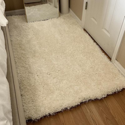 3x5 Ivory I got this rug in hopes that it was a true ivory white color unlike the other rugs I got from Safavieh that claim to be ivory but are beige. This rug is a true ivory/white color. In some lighting it has a slight cream color in areas. It is very plush with a mixture if yarn and shiny threads. A couple of requirements I wanted for a rug was being able to vacuum it and open a door over it. I use a dyson vacuum and it takes some extra effort and push to vaccum it regularly. With the handheld attachment it works easier. And a standard door was able to open over it better than 2 in + pile rugs. I had fluffy it up with my hands after opening the package and noticed a waxy feeling on my hands after this. I’m not sure if the waxy feel is due to the type of yarn being used but I never had this issue with my other two Safavieh rugs and worried it may attract more dust and hair to stick to it. Due to this and the SLIGHT difficulty to vacuum it, I may have to return. But this rug is great if youre going for a minimalistic look with neutral tone decor!