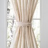 Perfect for French doors, this beautiful door panel is sheer enough to let light filter in while offering a level of privacy, as well. The luxurious, yet, casual fabric blends the classic textured look of linen with the durability of polyester. Finished with all-around hems; pre-washed for a soft drape. Door panel is sold individually including one circle tie back for an hour glass shaped design. The door panel measures 52" wide with lengths available in 36", 40", 63" and 72". This exquisite style features characteristics of any custom window covering, adding a rich and elegant look to your home. For a breezier and more casual look, this charming design features a 1 3/4" rod pocket and 1 1/2" header on top and bottom of panel. Available in white and natural. WOVEN TEXTURED LINEN-BLEND FABRIC: This loosely woven textured fabric is both casual and elegant, creating a warm look and feel in any space. This gorgeous and unique semi-sheer fabric creates the perfect amount of light filtering, while allowing the curtain to hang gracefully and beautifully in any room