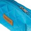 I was looking for a small cosmetic bag to keep my everyday makeup. This one is a perfect match. It’s very good-looking, sturdy, and fits everything I need (foundation, blush, powder, mascara, lipstick, a couple of brushes). I love the beautiful teal color of this little bag.