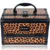 - SHANY Chic Beauty Train case: Medium travel makeup train case which measures 9 in x 6 in x 6 in. It weights around 7.2 pound. The beauty case comes with shoulder strap , multiple plastic makeup compartments and dividers for easy makeup storage.