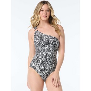 A flattering tummy control style with 360 degrees of control lining. This Shapemaker one piece swimsuit will enhance your shape, smooth your midsection and provide comfortable all-around control. One shoulder with ring detail adds a statement to a dainty cheetah print.