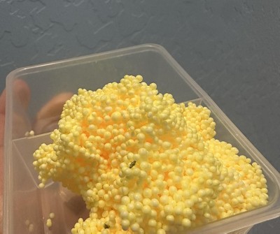 A: Hello NKA - Thank you for your interest on - Shaping Foam Craft Kit. Yes, the craft Kit includes six containers of moldable foam in six different colors. As for container size, the overall shipping package measures approximately 7 in (length) × 4 in (width) × 5 in (height). Hope this information helps. Happy shopping! - Rose