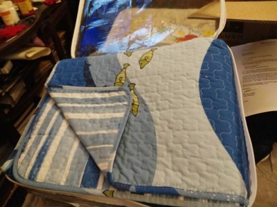 [This review was collected as part of a promotion.] I was SO impressed with this cute 2pc reversible bedding set by LUSH Decor! It comes with a lightweight quilt (which keeps you super warm & comfy without getting too toasty) & a pillowcase. It is reversible so one side has sharks & fish and the other side had stripes that are in the shape of waves. It’s small enough you can wash it in the machine at home which I was super impressed by. This set was for my son who is autistic & has some sensory issues. He LOVES it! The little were impressed with it as well, I would definitely recommend this brand & especially this set. One of my favorite things about it is that the colors are super vibrant & there is also tons of detail in it. It’s also not too “childish” so it can grow with him. And of course it’s a quilt so they have a longer life than your average bedding set. All positives here!