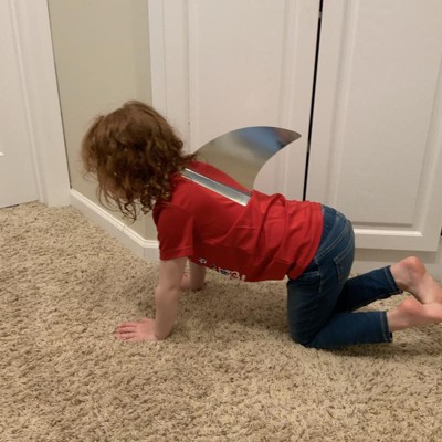 [This review was collected as part of a promotion.] This kid’s silver shark fin is a great decoration for multiple occasions. It also makes for a very entertaining evening when rough housing with your kid! The fun was very simple and straightforward to attach to my daughters back and stayed in place during the entire time we were playing. It was fun the pretend to be sharks for as long as we did because the fin was durable, not easy for the child to remove on their own, and very lightweight - making it almost unnoticeable for my daughter that she was wearing it in. I received an incentive to write this review.