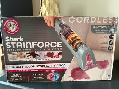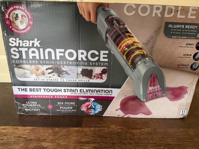 Stop tough stains and spills in their tracks, anytime & anywhere with Shark StainForce the Cordless Stain Destroying System. Powerful stain-grabbing suction + 30x more stain-fighting power+ combine to deliver the best tough stain removal+ in the portable stain cleaner market. Cordless and always ready when you need it.