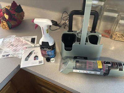 I received the Shark Stain Force with caddy and reusable spray bottle with cleaner. The reusable spray head does not work at all. I have went through the trouble shooting and nothing. Trying to turn in warranty and it keeps saying model not found. From other reviews with same issue I am thinking Shark may want to figure out why this keeps happening.