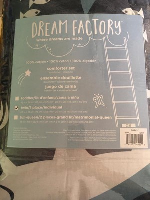 [This review was collected as part of a promotion.] I received the Dream Factory Sharks Cotton Comforter Set I ordered. I ordered this comforter set for my grandson's room, he really likes it. The set included the comforter, which is reversible and a pillow case that fit a twin bed. I went with sharks, they are his favorite. The comforter is all cotton and very soft. A big thumbs up, a definite recommend