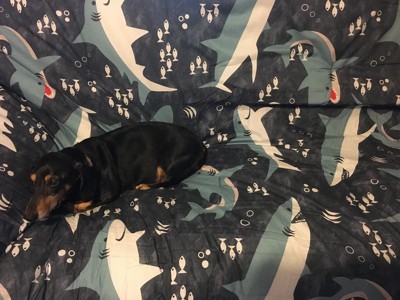 [This review was collected as part of a promotion.] My daughter loved this Dream Factory Sharks Comforter set as soon as she saw it. She is a huge fan of sharks and this is what she wants her bedroom done in. It fits her bed perfectly and it is not overly heavy but warm enough for her to want to use every night. I have washed and dried it a couple of times and it still looks like new. No fading or pilling yet. She has already shown a couple of friend's so we have already recommended this one to friends.