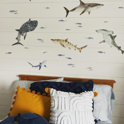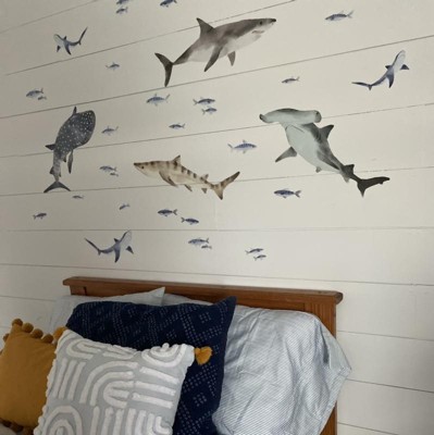 Sharks Peel and Stick Wall Decal - RoomMates: Vinyl Ocean Creatures for Kids' Room, Self-Adhesive Window Decor