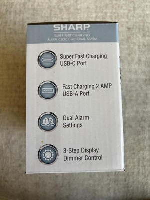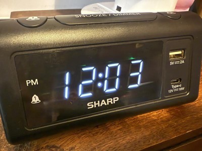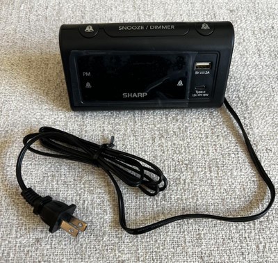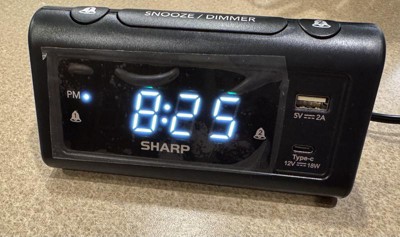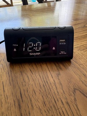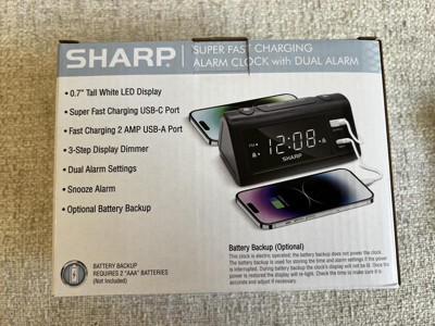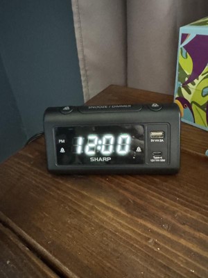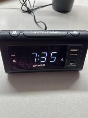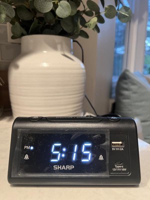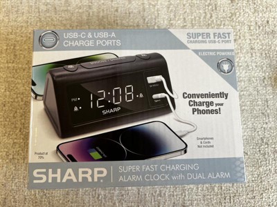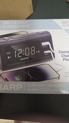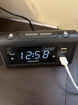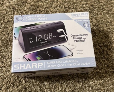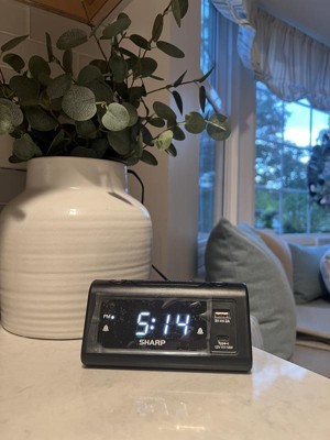 Sharp Digital Dual Alarm Clock with A/C USB Charge Ports Black