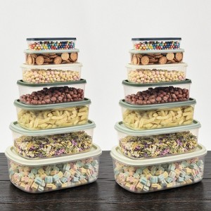 SharpChef 14PC Rectangular Plastic Food Storage Container Set, Stackable, Nesting, Airtight Leak-proof Lids, 7 Colors