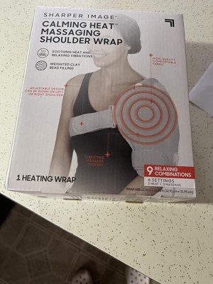 [This review was collected as part of a promotion.] The calming heat shoulder wrap by Sharper Image is a great product. I used this product after hurting the top of my left shoulder on my tractor. The shoulder wrap is easy to apply and to use the heat and massage settings. After using the product for about fifteen minutes my shoulder felt much better. There are three heat settings and three massage settings to use in any combination. I will continue to use this product and highly recommend it to others.