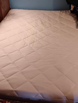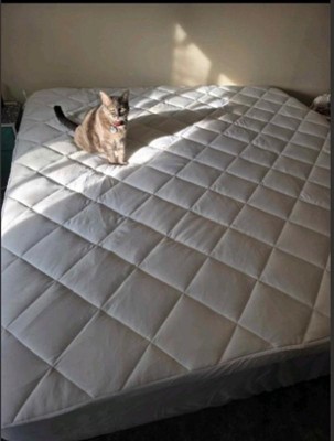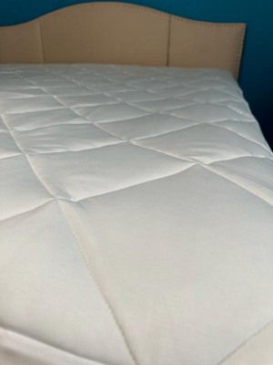 [This review was collected as part of a promotion.] This is a very breathable, lightweight mattress pad. It fits our full size bed perfectly and doesn’t move around on the bed. It seems to be very durable and is machine washable, which I love. It is silky and cool to the touch. The only thing is… it is a little thinner than I would have liked, as you can see in photos. I would’ve enjoyed even more cushion and padding in a sharper image pad. Overall though, it’s a good value for this product.