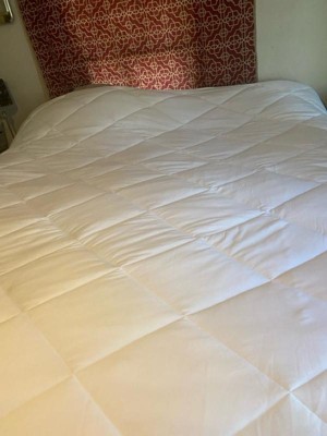 [This review was collected as part of a promotion.] This comforter is great for a few reasons. It’s oversized, so looks good on the bed since it hangs down further, it is VERY cooling! So nice on these hotter summer nights. Put a duvet on it (cotton) if you don’t like white, and it’s perfect!