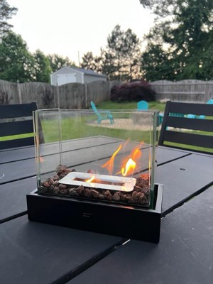 [This review was collected as part of a promotion.] This table top fire pit creates an amazing ambience for a chill night with great conversation. After an easy assembly, I filled alcohol to the line, put it on the table, lit it, and it stayed lit a good amount of time.