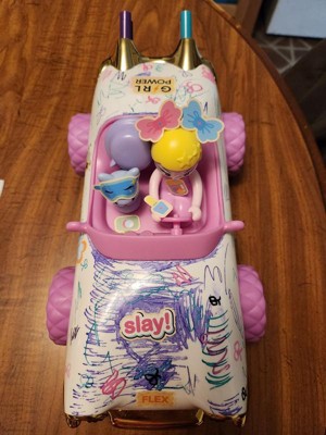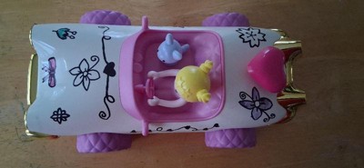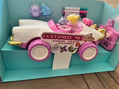 [This review was collected as part of a promotion.] So this is a very fun r/c toy car. My children absolutely love it! My daughter loved decorating it. Comes with all kinds of stickers for the headlights, tires, and license plate. You can change from a heart or a wing in the back. The car hold the markers so they don't get lost. You can color on it again and again. The girl driver has a hat you can put on or take off. The price is decent. We had a lot of fun with this car!