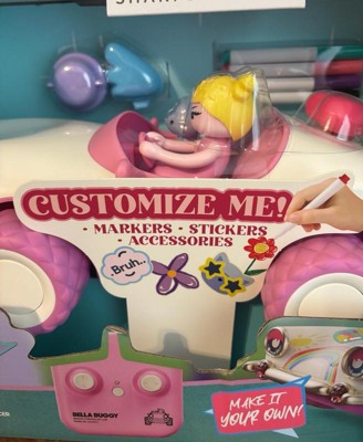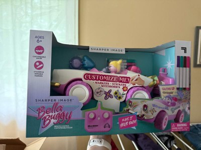 [This review was collected as part of a promotion.] The remote control Bella Buggy by Sharper Image is so cool!! It comes with markers, lots of stickers, and interchangeable pieces, all for decorating!! The "tail pipes" are also cool marker storage spots! My daughter had so much fun decorating this buggy with stickers, and drawing her personal art all over it!! She loves driving it all around our house, with the remote control. It has several directional changes, too, as are explained in the included, detailed instruction papers. This would make a great gift for any young girl, who loves showing off her artistic skills!! It's good quality and durable, too! Very cool!!