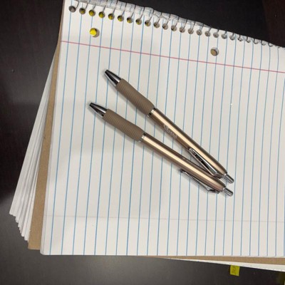 [This review was collected as part of a promotion.] I purchased the Sharpie S Gel pen in the gold metal barrel. The pen feels and looks like a high quality pen because of the metal barrel and added grip. I love the color of the barrel, but it doesn’t look like your traditional gold color. The pen writes well and is smudge free. I tested it out on a notepad. It doesn’t glide as smoothly as the other Sharpie S Gel pens, but it looks more expensive than the others. The value is good considering you get two pens. I would recommend this pen. I received an incentive to write this review.