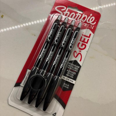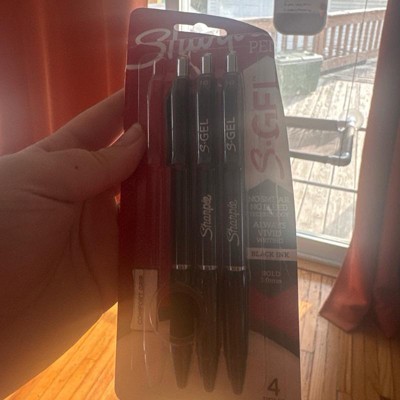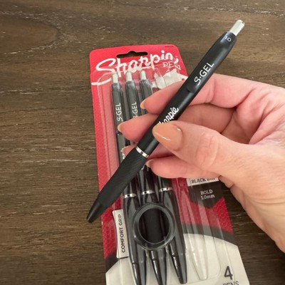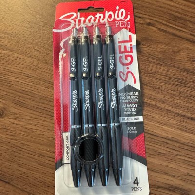 Sharpie 4pk S-Gel Pens Black 1.0mm Medium Tip Black Ink: Retractable, Contoured Rubber Grip, Pocket Clip, Bold Point