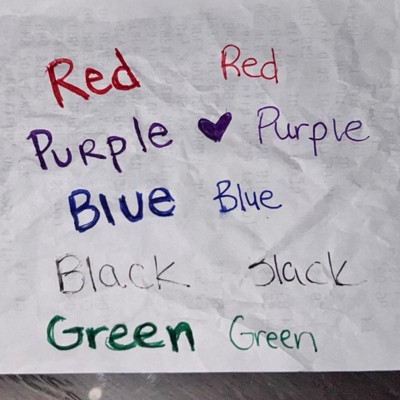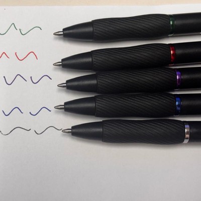- Includes 4 black, 1 blue, 1 red, 1 green, and 1 purple gel ink pens