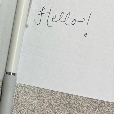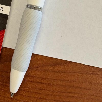 [This review was collected as part of a promotion.] This is a very nice medium tip pen. The barrel is made of plastic so it is lightweight but the grip is comfortable. I love how sleek the design is. The white color is nice and looks great. It has a very clean look. The ink is black for this set. I love that it is a gel pen. It writes very smoothly. These are great to keep around everywhere: in your car, your purse, or anywhere else I received an incentive to write this review.