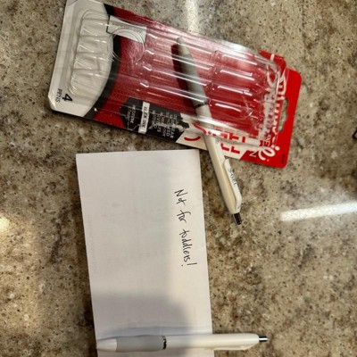 [This review was collected as part of a promotion.] The set of four white gel sharpie pens is a great bargain and good quality. They glide well and don’t bleed. I put one in my kids game day bag because it was pictures after. Came in hand for me and a few other parents after practice to fill out the order forms. I have the rest in my kitchen drawer with sticky’s. I like the soft grip and like that I can click it in and don’t need a lid, which usually I end up loosing. I received an incentive to write this review.
