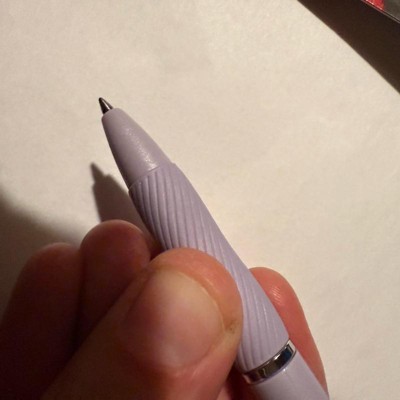 [This review was collected as part of a promotion.] This pen has a really comfortable grip and is easy to hold. I tend to hold my pens a little slanted and it’s not a great pen for the slanted writing, the ball doesn’t seem to hit the paper well so I end up with gaps in my writing, but if I’m straighten up a bit it works perfectly. The black ink dries quick and doesn’t smudge, which is nice! It’s a bit muted for a black ink but not gray so it’s fine. I received an incentive to write this review.